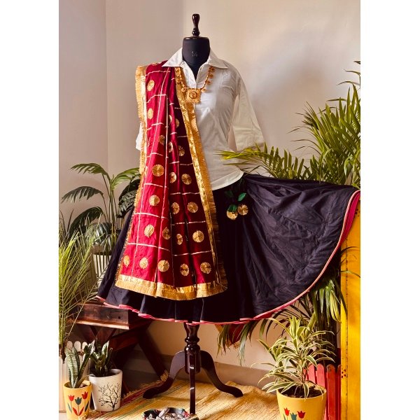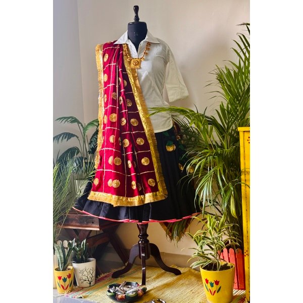 Authentic Haryanvi Traditional Dress – Black Daman | Maroon Dupatta | White Kurti