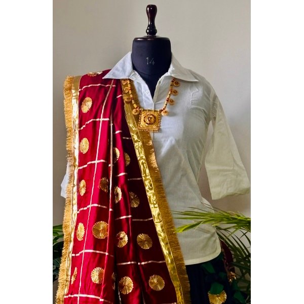 - Maroon Dupatta (2.5 meters) – Rich cotton fabric adorned with stunning golden gota design