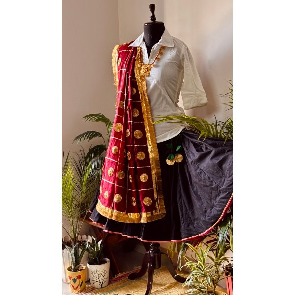 Be the first to review “Authentic Haryanvi Traditional Dress – Black Daman | Maroon Dupatta | White Kurti” Cancel reply