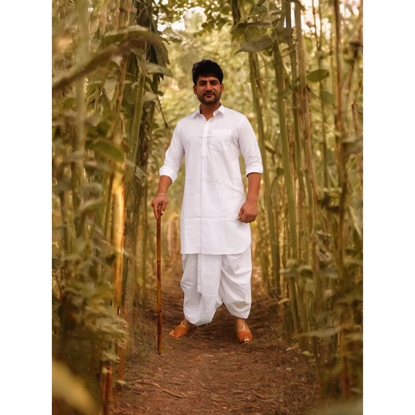 Authentic Haryanvi Men’s Ethnic Wear – White Kurta, Dhoti & Khandwa