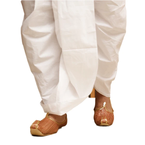 • Dhoti: Pre-stitched and ready to wear, this dhoti is crafted for ease and breathability, ensuring all-day comfort.