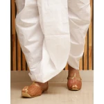 White solid traditional dhoti has a waistband with a drawstring closure.