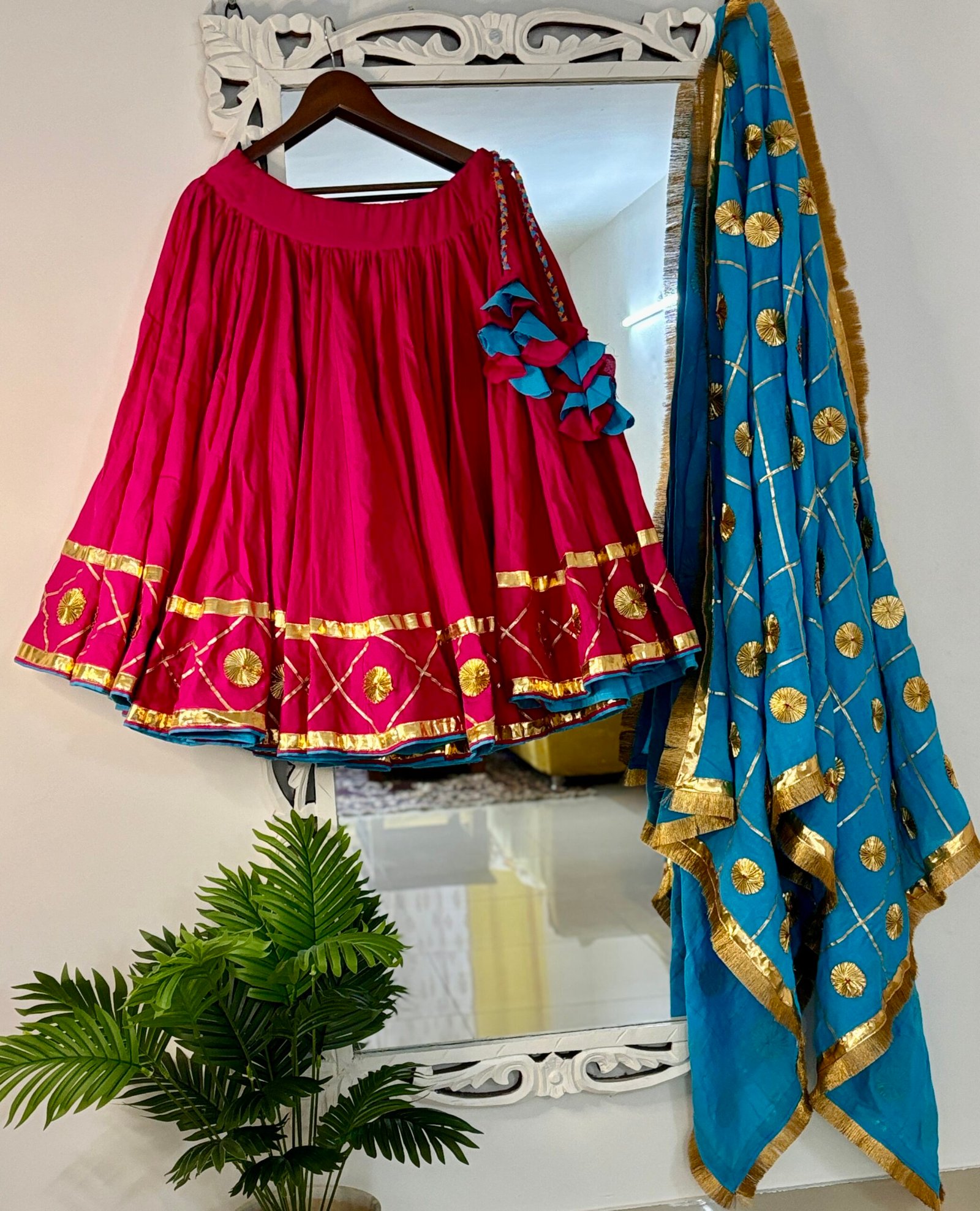 Authentic Haryanvi Traditional Dress – Pink Daman with Sky Blue Reza Laman & Gota Work Dupatta