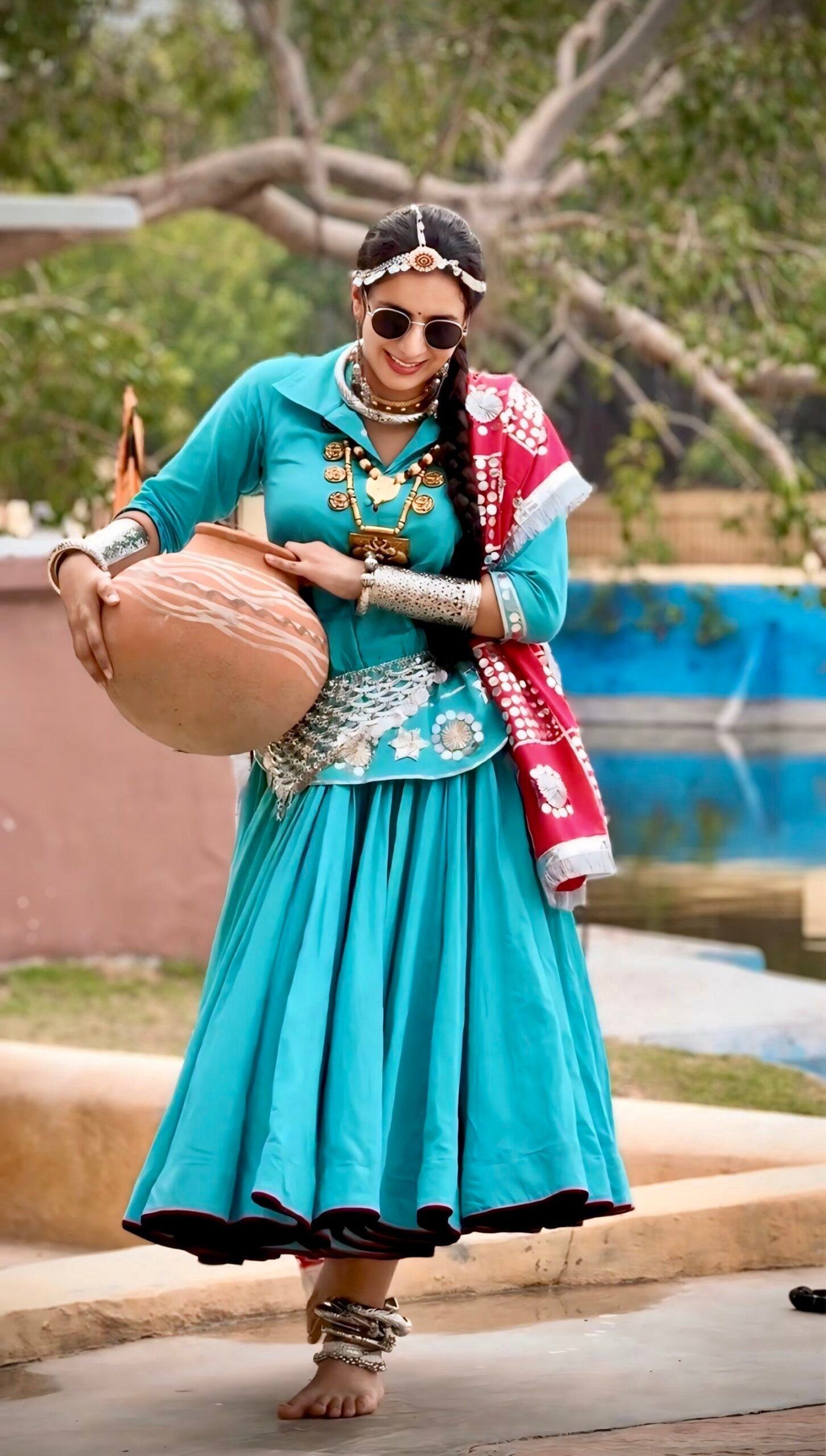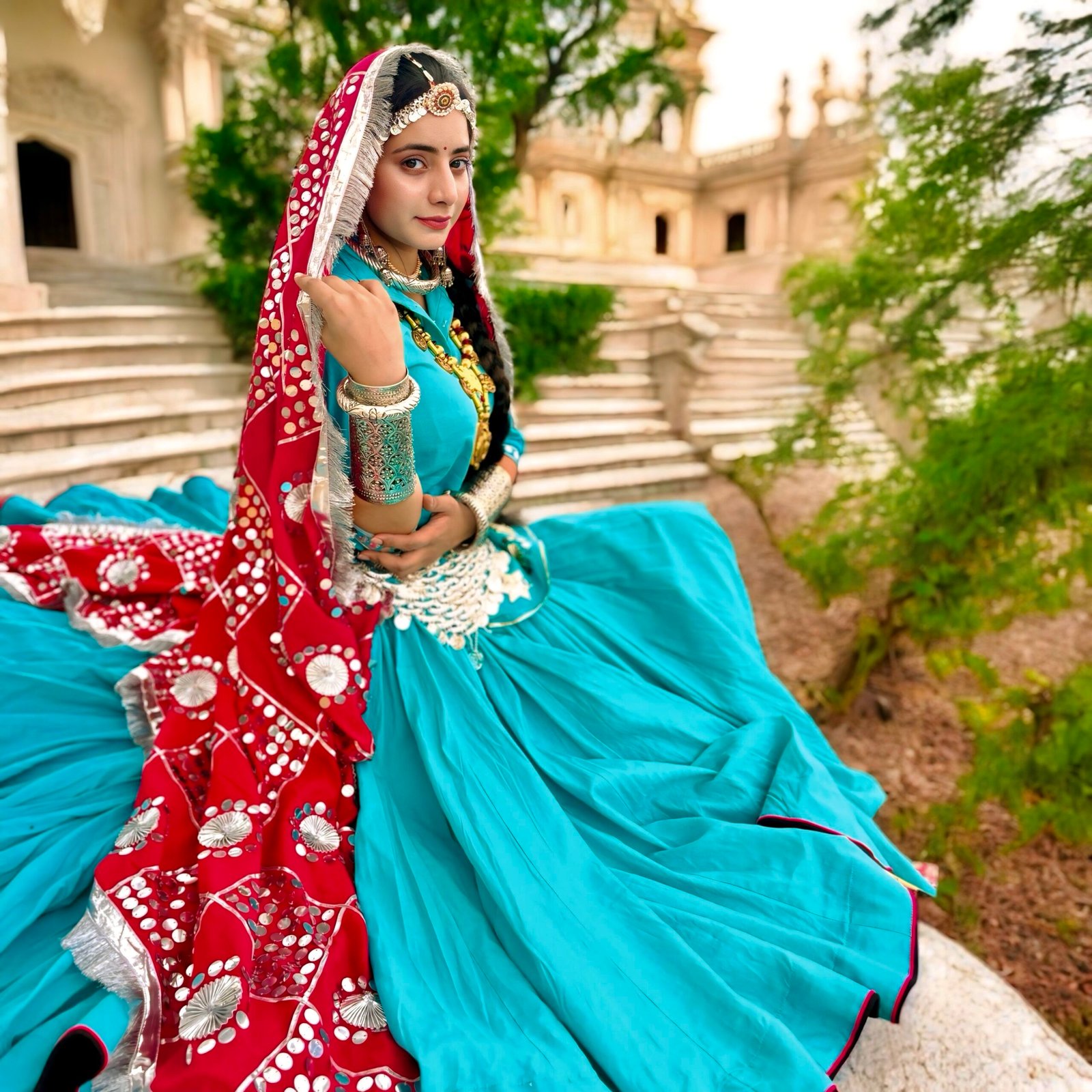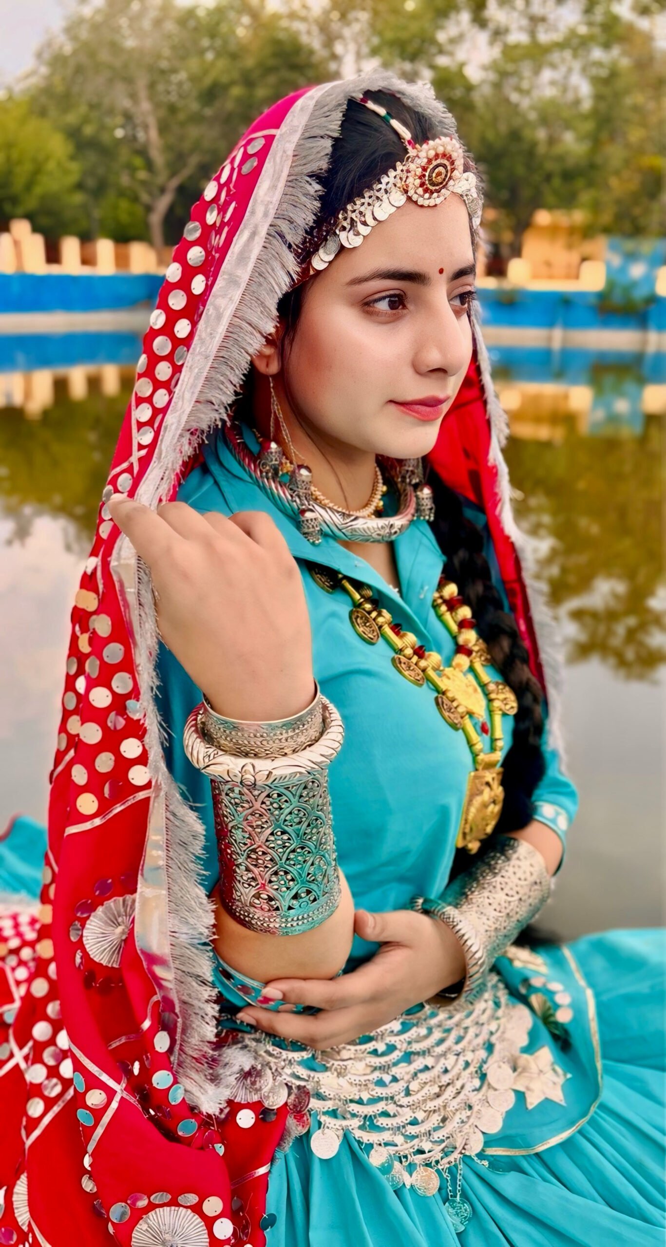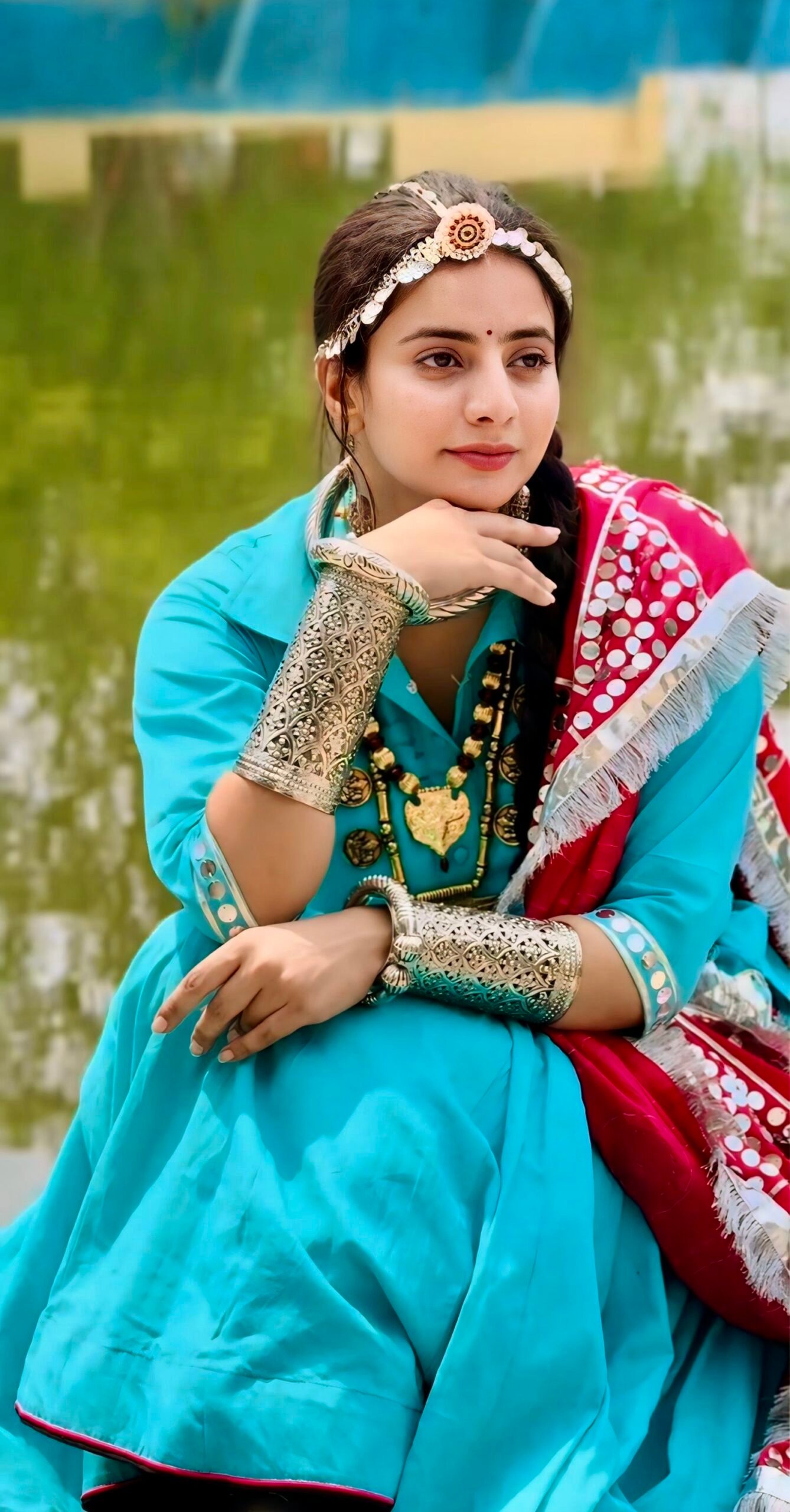 Each ornament is a rare cultural piece, adding an authentic ethnic touch to your attire. Whether you’re performing in a folk dance, dressing up for a Teej celebration, or showcasing regional pride at a wedding — this jewellery set is a must-have.