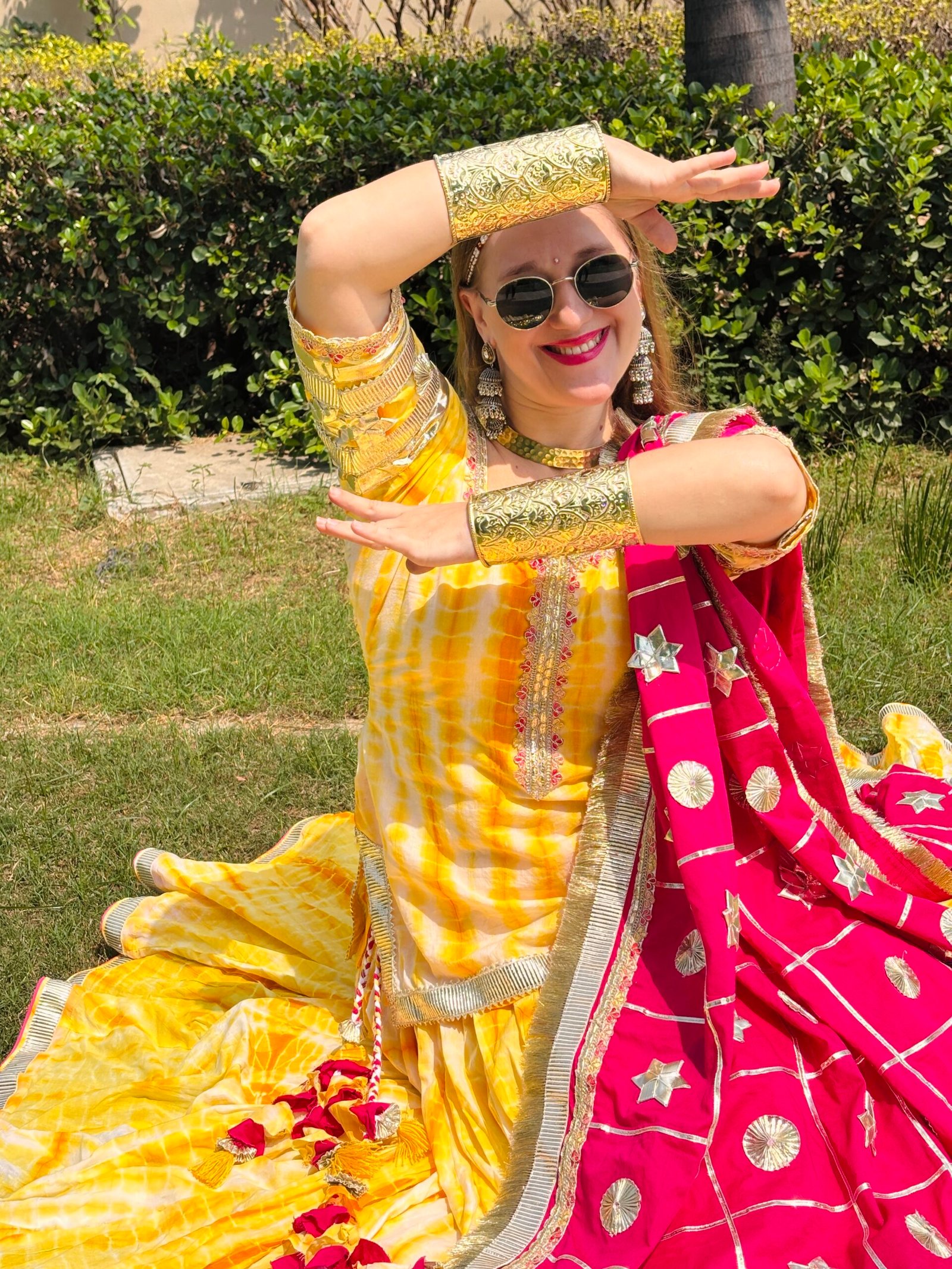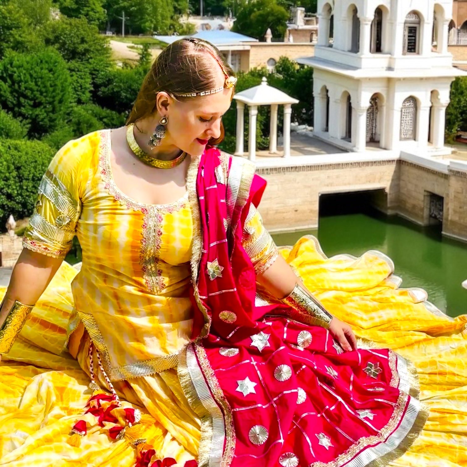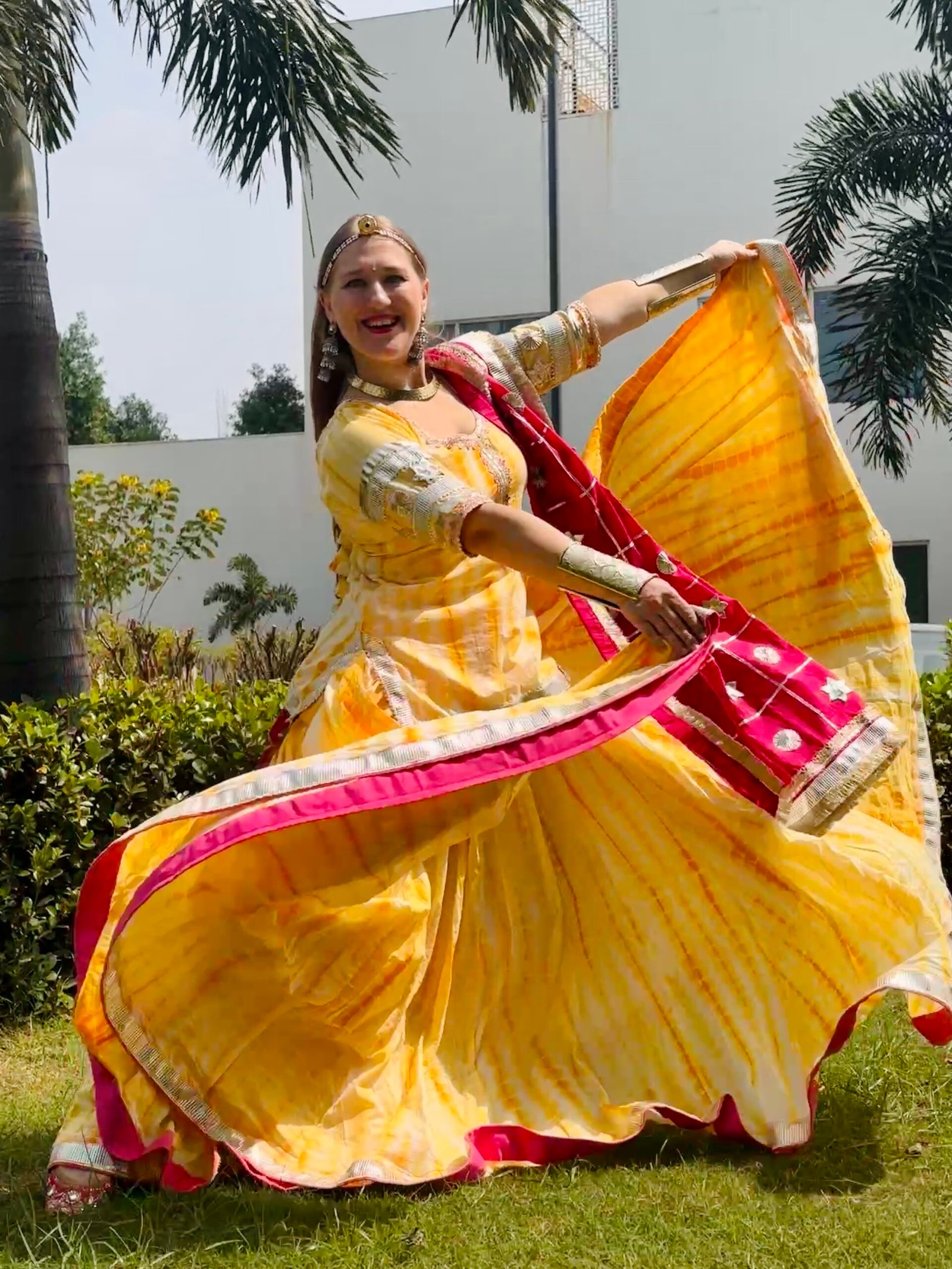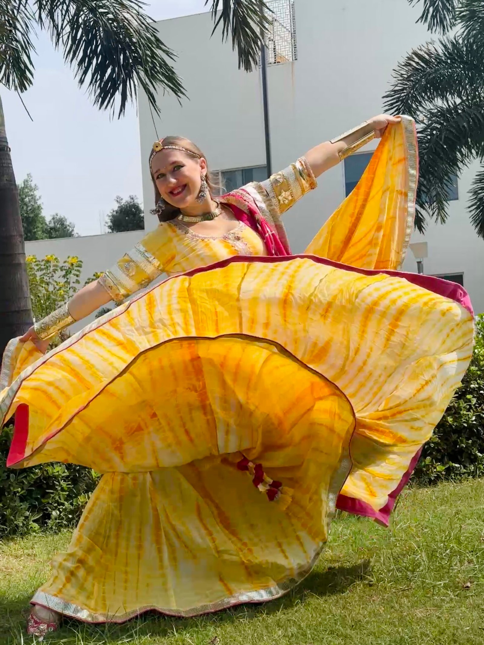 Bring a radiant touch of tradition to your festive wardrobe with this Tie-Dye Yellow Malmal Cotton Ghagra & Kurti set. Handcrafted with love, this outfit beautifully fuses Haryanvi culture with Rajasthani aesthetics, creating a timeless and elegant look for Indian celebrations. 🌸